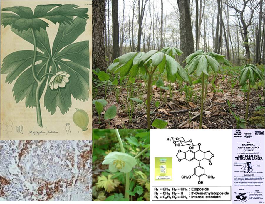Interestingly, throughout this time researching the history of plant use in medicine, I knew my topic of interest was not dead. Each year, whenever it was time to apply for the MD-PhD, the pharmacology department head would meet with me, very cordially, because he was interested in updating himself on what I knew about plant drug compounds. We had discussed a number of projects that needed to be done in his lab, for example using the cardiotoxin strophanthin G and its derivatives to study membrane channel receptors, and we rediscussed the potential for researching several new neurotoxins, and more specifically the possibility of researching the rapidly growing cancer drug industry that existed for epipodophyllotoxin (today known as etoposide)–at the time I was researching other plants that I knew produced this drug locally (in particular, Podophyllum peltatum, the same plant used to make the Carter’s Little Liver Pills above), and had a few other plants with pharmacological industry potential which were of potential use as intercalating compounds for the treatment of the most active forms of cancer (esp. testicular cancer).