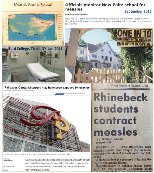 Now, it is easy and at times too easy to draw these comparisons between regions and see similarities. Culture itself for example is not the cause for this part of the valley showing a tendency to be a nidus. Statistically, I might call it a covariate. The main factor in this migration of measles into the eastern U.S. is the population health behavior features, and the fact that the Hudson valley has a unique behavioral feature–programs that bring together many people who demonstrate a strong support of personal beliefs, personal rights to chose, and "alternative forms of medical beliefs or thinking."