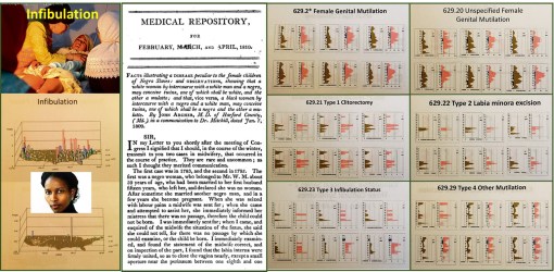 1. that there are at least two kinds of infibulation being performed on children (four are differentiated with the version 9 ICDs); the younger ones do get the less traumatic form perhaps, because of its potential fatalities.