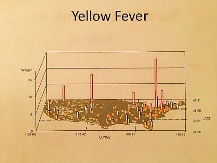 The first disease with numerous topographic and geographic associations was the yellow fever, finally put onto a map by New York’s Valentine Seaman, as part of his investigation of the New York City outbreaks.