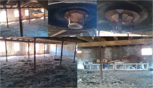 The end and middle of sections where the poults were raised, at varying ages. They were moved from the heat lamps near the hatchery to the caged areas at the opposite end of the floor over a few weeks. At this opposing end, they were fed a recipe laced with Fort Orange Turkey Starter, inspected regular by a licensed vet (Dr. Crum); this was to prevent bacterial outbreaks on their skin and in their respiratory passages.