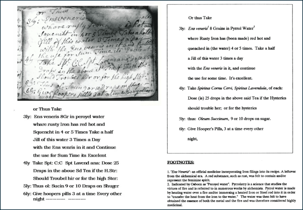 First, the discovery of George Starkey/Stirk and his work at Harvard University very early in colonial history, on the alchemical principles of what is popularly referred to as the “philosopher’s stone”, the prima vitae or essence of life, and its relationship with two medical recipes or ingredients referred to by Dr. Cornelius Osborn: ens veneris and sal ammoniac.