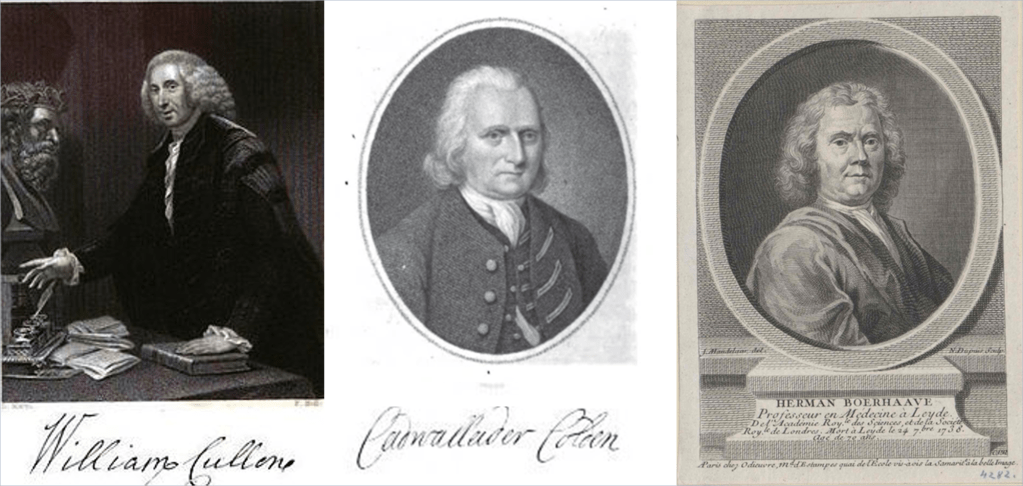 These Reformed doctors did in fact also take on the old favorites learned from by physicians of all sorts–Thomas Sydenham. Sydenham relied upon clinical observations and experience, not just speculative theory, to make his recommendations–and these were all based upon the epidemics he worked in and through. Doctors of all sorts respected the works like those of Sydenham, and many also honored the classics still being published by Hippocrates and Galen. But they relied quite a bit on Anglican ideology over that of Hungarian ideology. Even though both were equally wrong and equally right, in major parts of their ideology. When the Revolutionary war began, our leader Samuel Bard favored the Anglican teachings, not the Middle European teachings. Thus, the famous William Cullen’s preachings of humours prevailed, as did that line of reasoning for why to bleed patients like we will, and should, not the preachings of Slavic-Hungarian writers, whose focus was on observations and experience in the hospital, like de Haec and Stollius.