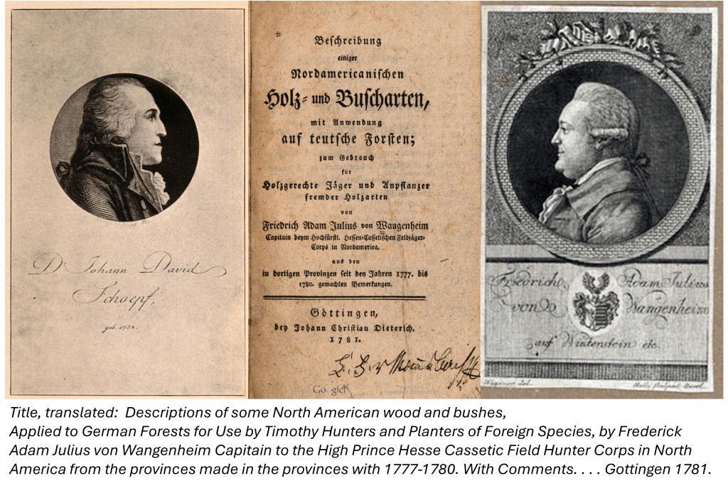 The work of his daughter was lost for a short while, for it never led to an initial publication due to her marriage soon after this work was minished, and her fairly early death just a decade after much of her combined ethnobotany-scientific botany was completed. The notes she had kept left this country completely at the end of the Revolution, about 1783, when her papers were handed over to a young Hessian military leader, scientist, naturalist, military landscape artist, and engineer just before the British Army gave up Manhattan Island. Her papers remained dormant in the place where this professor later developed the field of Forestry as a college or university level ‘natural philosophy’ (science). Their rediscovery in his later years, led to the immediate publication of her work and the development of her recognition by middle European schools and scientists, well before the British natural scientists began to honor her accomplishments.