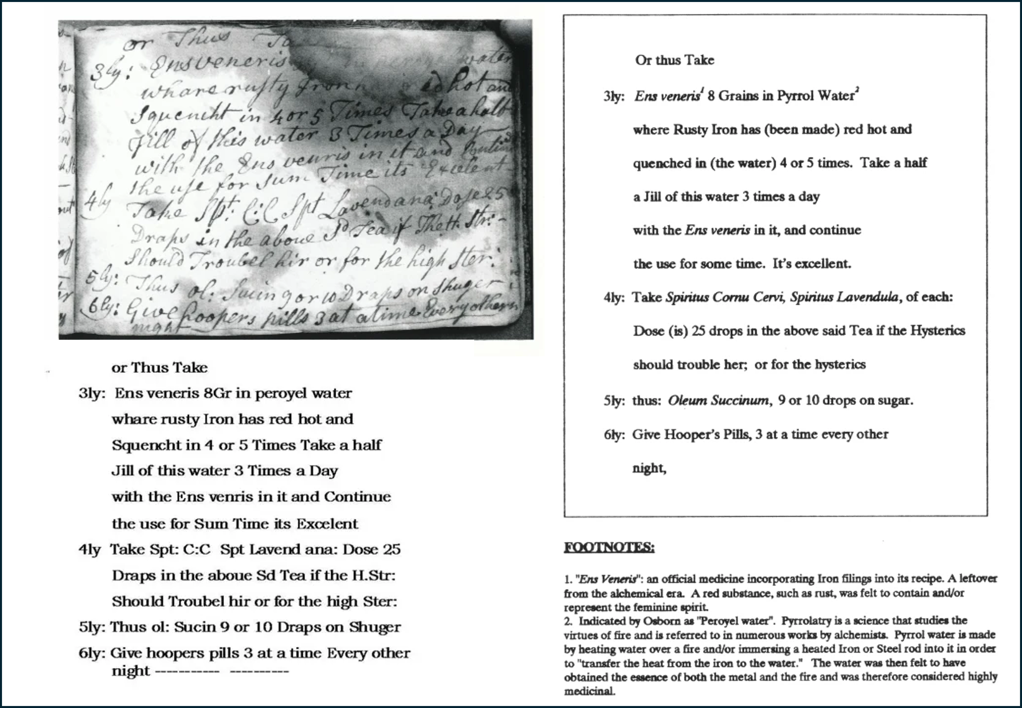 First, the discovery of George Starkey/Stirk and his work at Harvard University very early in colonial history, on the alchemical principles of what is popularly referred to as the “philosopher’s stone”, the prima vitae or essence of life, and its relationship with two medical recipes or ingredients referred to by Dr. Cornelius Osborn: ens veneris and sal ammoniac.