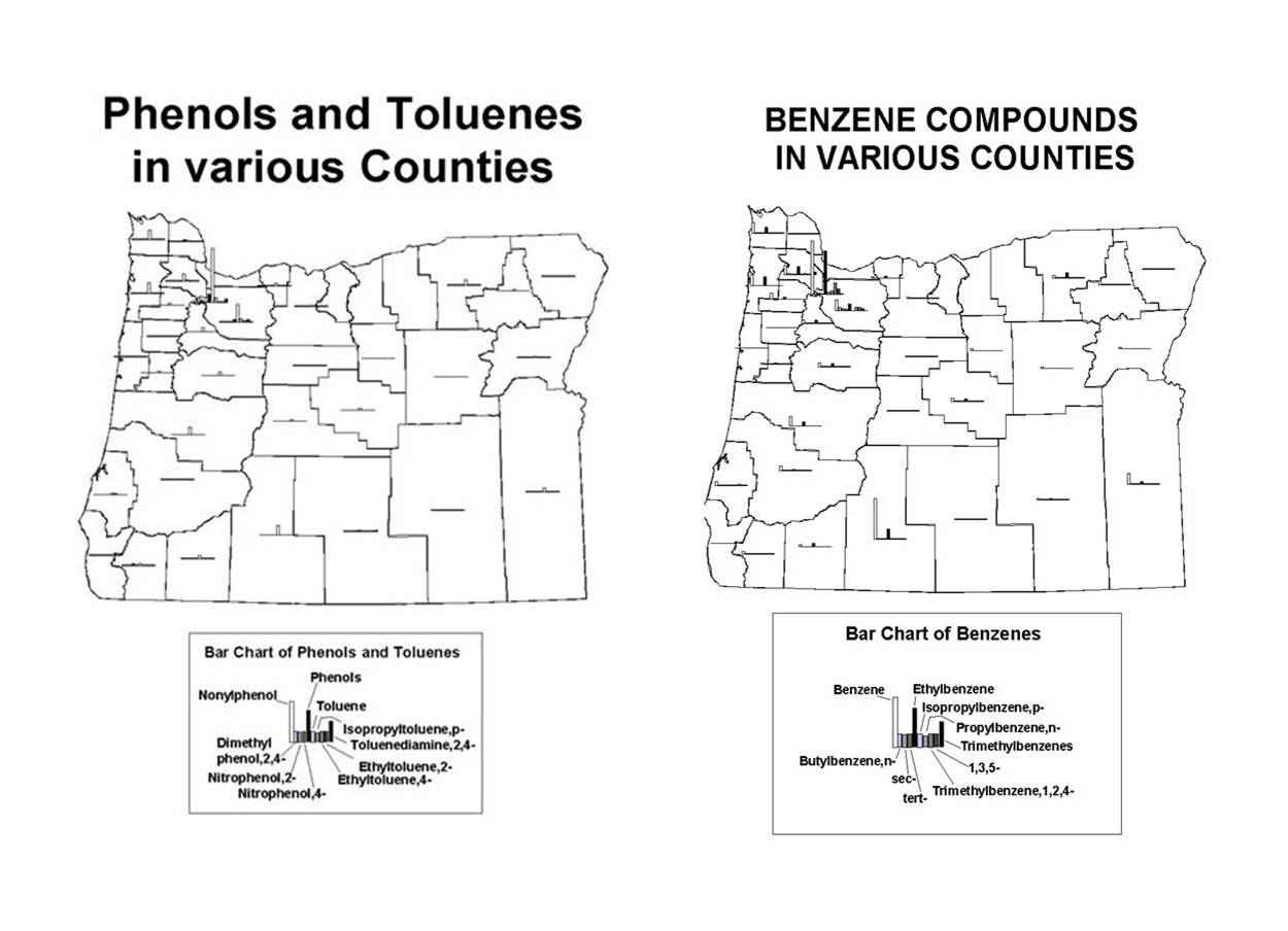 Two groups of potentially carcinogenic chemicals, using a barchart display