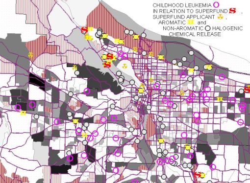 Sites suspected of releasing aromatic halogenic compounds were reviewed and related to a variety of leukemia and lymphoma types