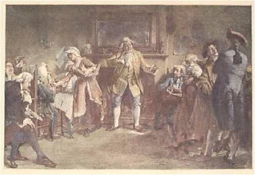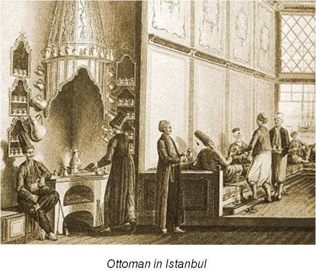 Like any public meeting place, room and board were possible for some of the coffee houses. But this required that the overnight tenants tolerate whatever other events occured in the building. Sleeping next to a barrel in the alley behind the brewhouse filled with sour hops and fermented barley was different than trying to sleep within an atmosphere filled with the aroma of roasting coffee beans. Sometimes rooms were provided in these buildings where special meetings could be held. But by the late 1700s and early 1800s, we find examples of coffee providers serving the community more than as just hotels and taverns filled with beer and coffee for the morning drink. The more highly skilled tavern owners set up in places where beans could be roasted in the main facility, and hops and barley brewed in a distant back yard barn, far enough away from the eatery to not deter the more sensitive of potential customers.