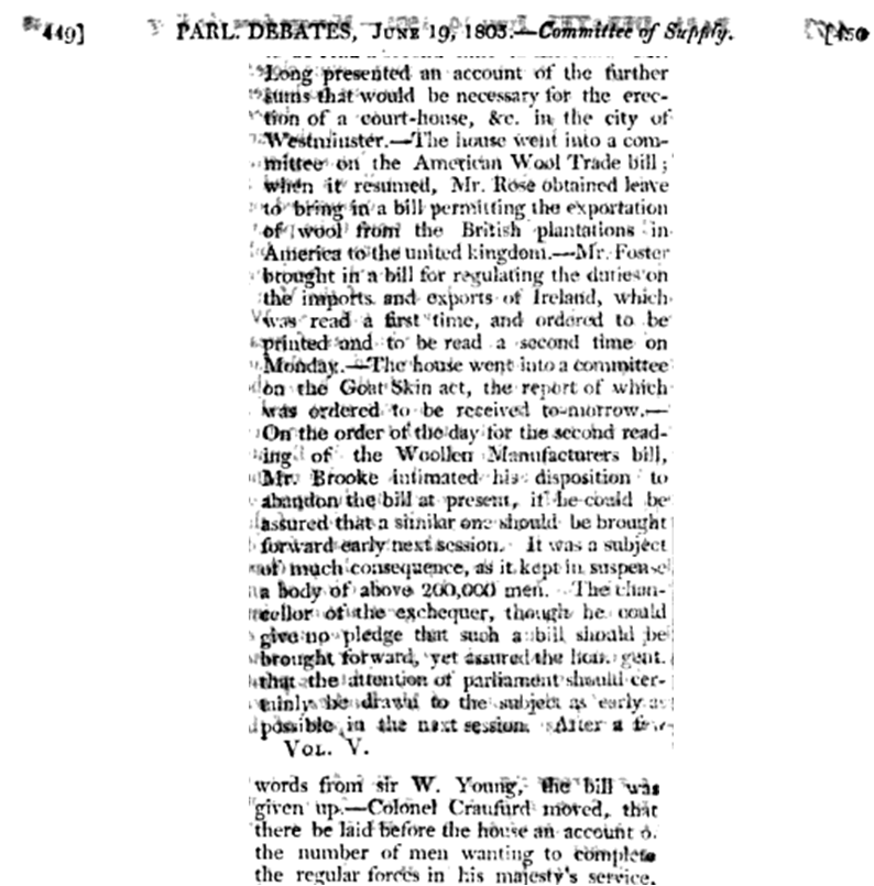 The events leading up to this popularization of wool and especially Merino Wool in the United States are rather complex. Spanish Wool was considered its own unique commodity, separate from the other wools. A British writer considered this wool to be coarse, a line penned for no other reason that to improve upon the British wool industry and the value his readership were asked to place on the local wool products (see on Google Books – ACCOUNT OF THE PROCEEDINGS OF THE MERCHANTS MANUFACTURERS AND OTHERS CONCERNED IN IN THEIR APPLICATION TO PARLIAMENT OF GREAT BRITAIN That the Laws respecting the Exportation of Wool might not be altered in arranging the Union with Ireland but left to the Wisdom of the Imperial Parliament if such a measure mould hereafter appear to be jult and expedient. LONDON. Printed by W Phillip George Tar J. Lombard Street, 1800).