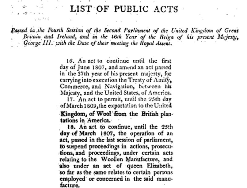 Malthusianism would near its peak around 1803, when Great Britain began to fully enact some laws it put in place limiting both the export of woolen goods from England and the import of woolen goods from other countries, in particular the United States. The next actions taken by British leaders and parliament were to more effectively market woolen products produced by sheep in England, but there was much more to this change in international policy than just pulling the shirt off your back so to speak.