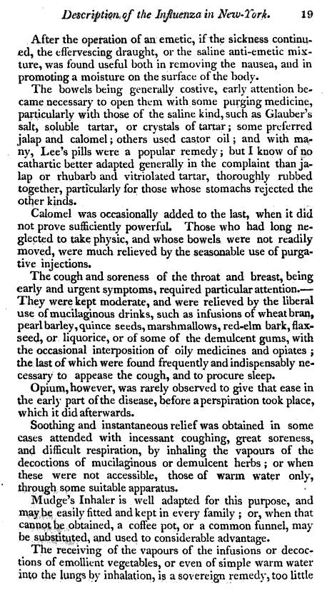 When the Influenza epidemics struck New York and Ricketson’s immediate community, it occurred at a time of the year that was persistent, but very different from the more common febrile epidemics that came into New York such as Yellow Fever, and the Hudson Valley such as Ship Fever (Typhus) and Spotted Fever. The other major epdeimics for this period were those related to Measles and Small Pox, with a number of studies also demonstrating ongoing problems with less easily transmissable diseases like the Mumps, Diphtheria, and Consumption or Phthisis (tuberculosis). Ricketson’s most important epidemiological study of the New York region was of the Influenza epidemics that frequently erupted within the region. This finally, led him to post and distribute the following Circular to the community and his peers throughhout the State. This would be later be followed by a fairly comprehensive multi-regional review of Influenza as a New York climate related public health problem.
