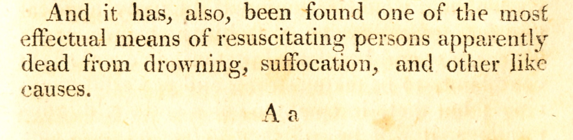 Although brief, this sentence is one of the more important pieces of the puzzle to understanding Ricketson’s take on the use of Medical Electricity and the practice and meaning of medicine. The “drowning, suffocation and other like causes” could have referred to one, or more of his experiences in medicine to date. His writings suggest he was quite familiar with the unsanitary nature of gaol spaces, and the tendency for these unhealthy settings to make any healthy body take an opposite course. He was possibly also in some sort of direct contact with other legal and legal penance practices, including the hanging of the worst of all of the criminals at times. It is even more possible that Ricketson managed to be in close proximity to cases of drowning in the Hudson River, much like a famous one published and philosophically discussed by him and his family, or Ricketson and the rest of his Quaker’s Friends community. It is important to note here as well that drowning was a common and even fairly well-localized event of historical importance to the County’s and Valley’s history. The husband of Madame Brett for example was lost in this same fashion almost a century and a half earlier: after being struck in his head by a sailboat mast, he died by drowning in the Hudson River. Ricketson’s observations or reminiscences of tales about other potential drowning victims and their chances of being saved, the mistreatment of gaoled criminals, and the use of deadly forms of punishment for some who were placed in gaol (something the Quakers were very much against), may have convinced Shadrach of the value and applicability of resuscitation practices, performed using a medical electric device. According to his statement, he may have been convinced by a child who went unconscious due to a fall through ice, or a victim of an accidental fall into River water who could not swim, or someone who also fell off a sailboat due to bad weather, or someone in gaol who was recently hanged for a crime. Whatever the cases, Ricketson seems to be referring to the sort of event that was several times printed in the local newspapers and weekly journals from London distributed about the region. Or he may have in fact witnessed an actual local drowning event and saw a local child’s life be pulled from ‘suspended animation’ and the innermost, not fully departed soul saved. This latter was most likely case, for Shadrach or a close association, or even a member of his family. According to this words, Shadrach feels fairly certain about his claims and the related events he has learned about and/or witnessed.