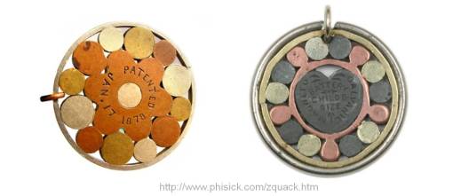 The use of magnetic ores, such as in the form of an amulet worn around the neck, may have been utilized as well, although no evidence exists regarding the popularity of wearing a magnetite or theoretically magnetic or electric crystal about the neck for treating any of these conditions. This method of applying electricity, once popular in ancient times (centuries earlier), and to a small extent as part of the mysticism practiced alongside alchemy, astrology, magic and the like, would not become popular again until the mid-19th century, when necklaces consisting of multiple metal disks arranged in the shape of a coin were worn as amulets.