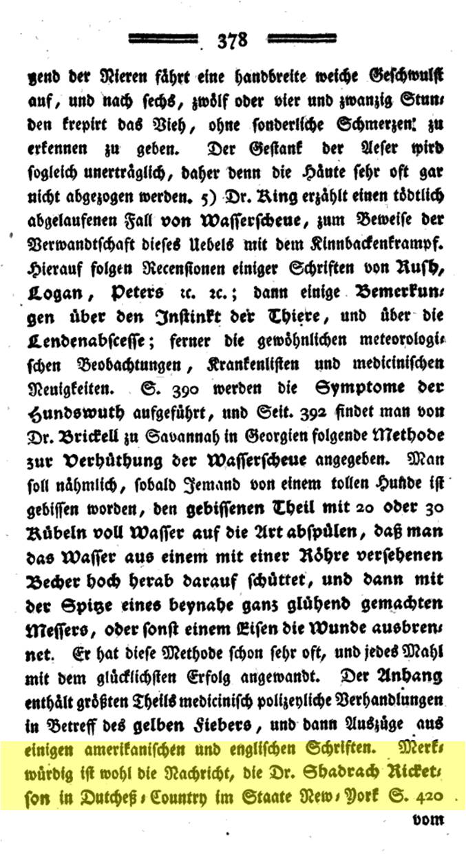 This had a very important impact not only on medicine in gernal, but a very personal and symbolic impact upon a specific group of healers whose work at the community service level made a significant difference upon many New York lives. The Shaker community just north of Dutchess County in New Lebanon, and at times very close to Quaker doctor Shadrach Ricketson who made a temporary stay near Troy, NY, would ultimately co-op with Ricketson and become a major provider of this valuable medicine for years and decades to come. Acknowledgement of this relationship is found in the 1812 to 1825 writings included as well on this page.