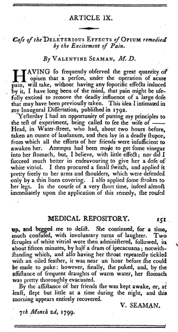 (Notice the lack of any mention of his experimentation with opium in this and any of the other later articles)