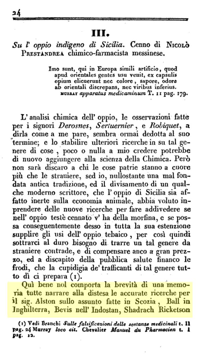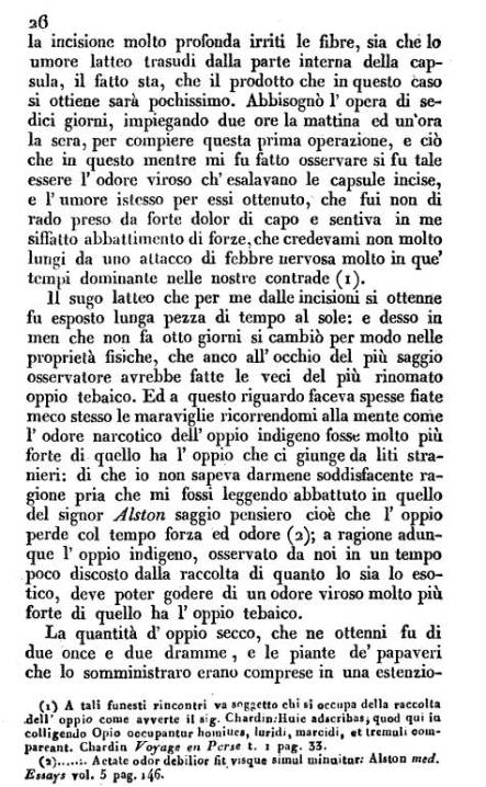 Note: in the following page, first line, ‘profunda irriti le fibre’ or ‘profound irritation effect upon the fiber (of muscle)’ suggests the nervous energy theory, a brunonian-cullen-thacher sequel. See each for more on this theory of the body’s ways of working in the Colonial Era review of philosophies.