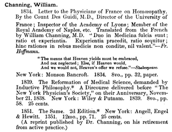 From a list of Dutchess County physician Hunting Sherrill’s writings, in Homoeopathic Bibliography