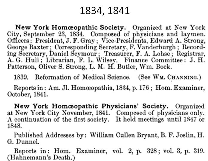 1835/6 – The Medical Society of the City and County of New York named Samuel Hahnemann an honorary member of their association.