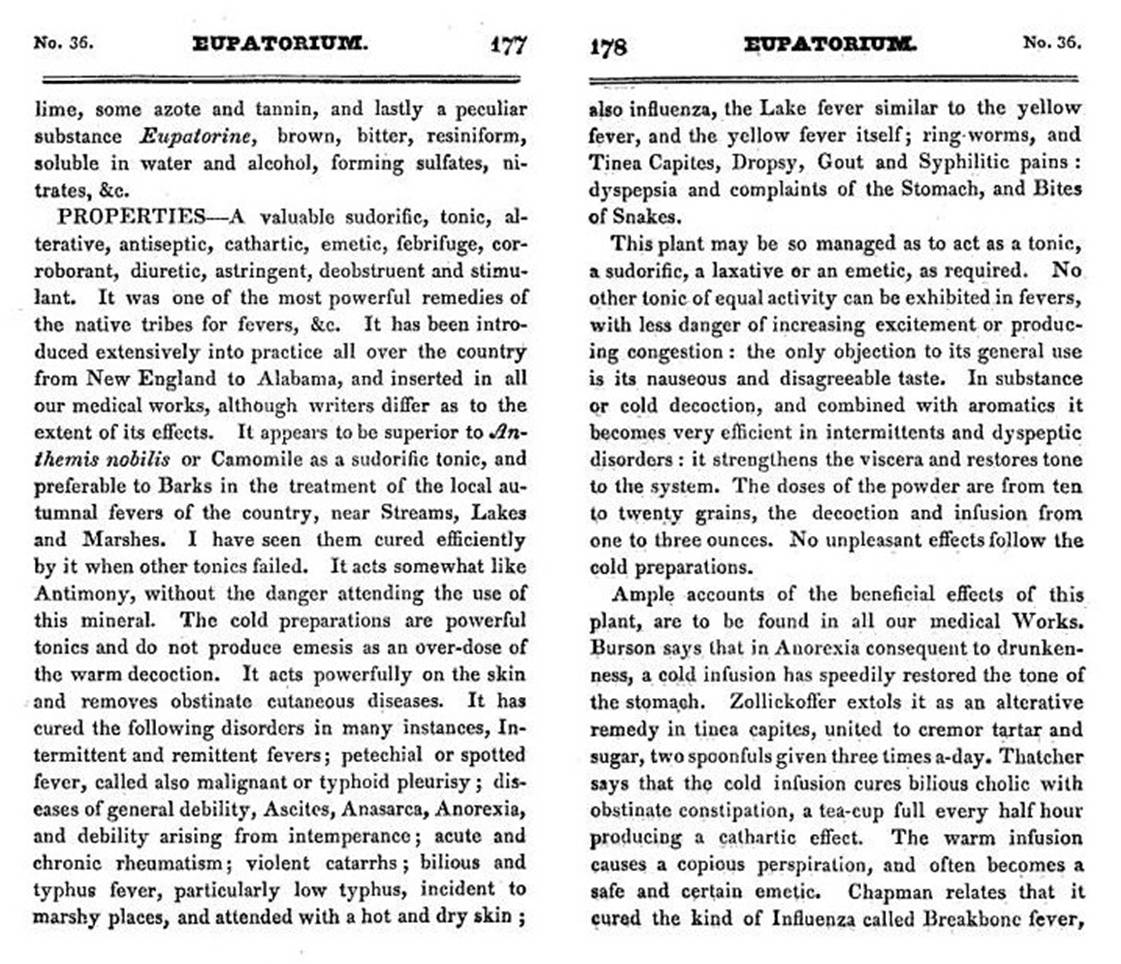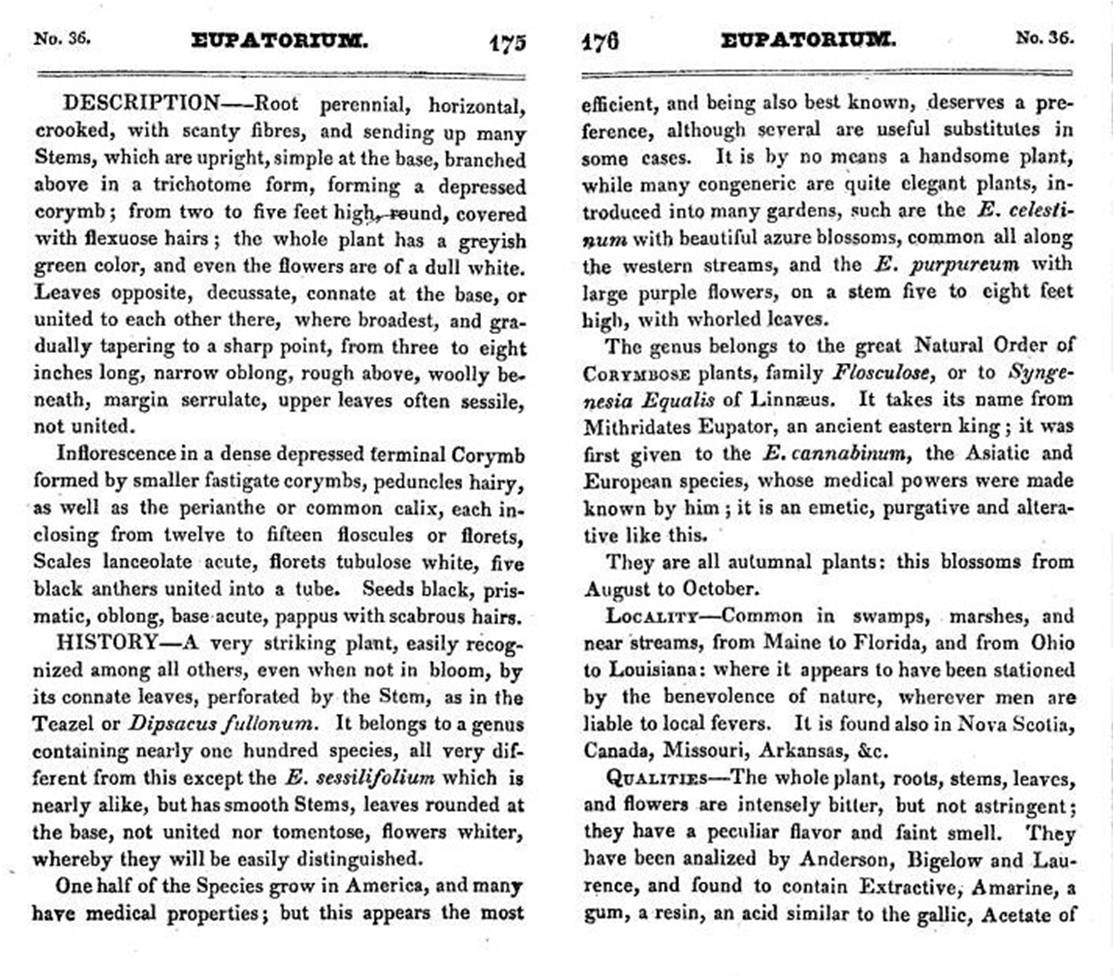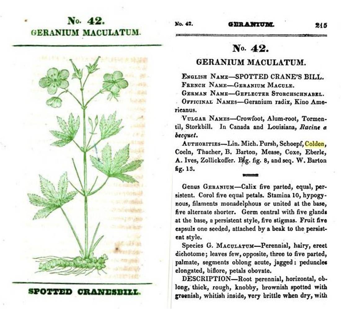 The following monographs were extracted from Rafinesque’s book Medical Flora, or Manual on the Medical Botany of the United States (1827). As usual, the references to Cadwallader Colden are highlighted.