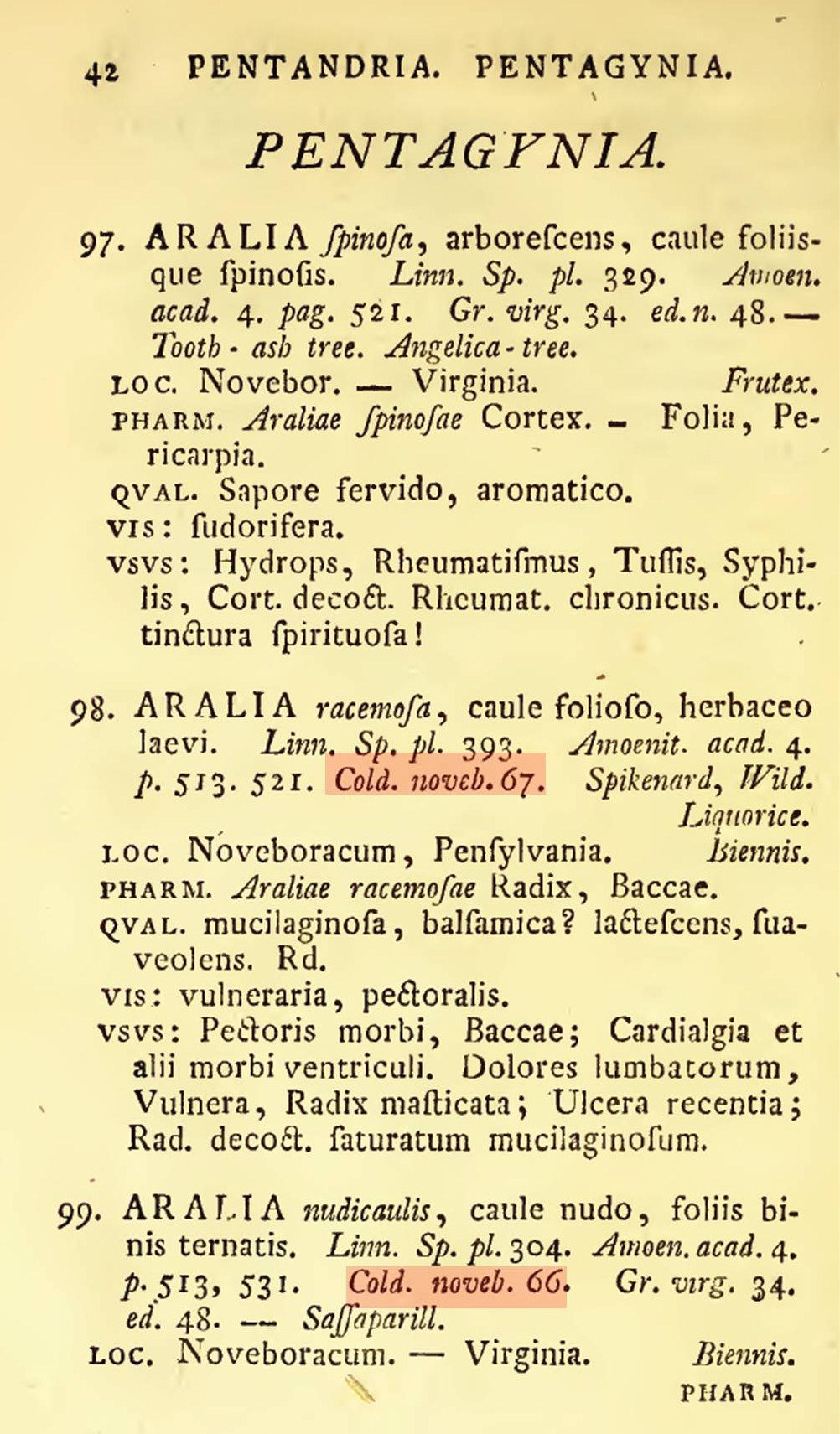 Johann Schoepf also cited four plants which he learned about through Cadwallader Colden’s work for which he provided ethnobotany information on, obtained from Colden’s notes. These plants are as follows.