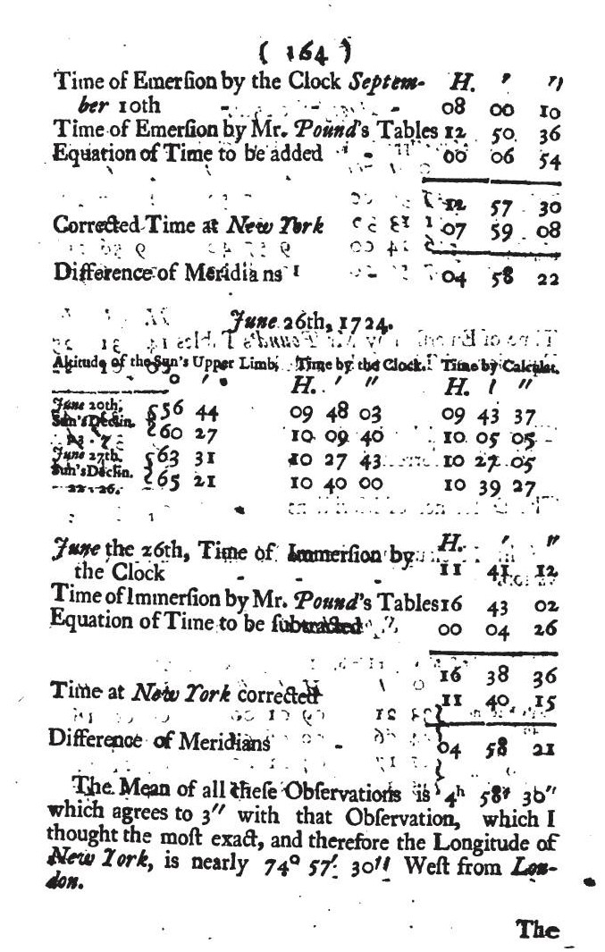 The event that Governor Burnet, Colden and Alexander were engaged in demonstrated the growing success of Newton’s approach to observing, documenting, calculating and even predicting natural events such as an astronomical event. They used this method to estimate the length of the distance of land surface travelled across the planet’s surface by the moon, per degree of longitude line that was passed during such a travel, in relation to the rotation and travels of the earth and sun in related to each of these celestial events. Although many of the events Newton was involved with up till now pertained to just the movement of the Sun, Earth, and Moon, or a number of activities focused on planetary moon behaviors, this activity was carried out with a specific goal in mind–to document their location precisely doen to minutes, degree and seconds. Due to the difficulty and complexity of such a measure, this type of mathematics required Colden to be more precise in his approach to taking these measures than if they were taken through the more common helio-lunar-terracentric measurement methods related to solar and lunar eclipses. Factors that had to be taken into count for this type of evaluation focused on the placement of Jupiter’s first moon (Io), its distance from Jupiter, the earth and the sun, and the geometric details about the actions of each of these moving bodies (Jupiter, moon, earth, sun) and their speeds about the sun and each other. It is even possible that Burnet, Colden and Alexander were also hoping to make their achievements stand out amongst the others performed each month in numerous places around the world.
