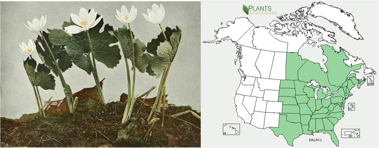 Sanguinaria. Common name: Blood-root. Note the description of the rhizomatic root: “carnosa, fragilis, succo rubescent abundans.” This essentially states that “The meaty rootstock produces abundant amounts of red fluid.” Colden states is was commonly used again “Icterum” (abscesses) for which it was an effective remedy. This use is transformed into the use of Sanguinaria latex or root-paste for the treatment of “cancer” by the 1800s. Such a use for Sanguinaria mimics a recipe popularized by German families during the very early 19th century as well–the use of Rhubarb mash to treat “cancer” and similar swellings, in which the mash due to its strong acidity essentially dissolves or removes the flesh from beneath. A similar recipe can be noted for Oxalis spp., Rumex acetosa and Rumex acetosella in the historical documents, due to its oxalic acid. In the case of Sanguinaria, the reason for the dissolution of abcesses is not so much the acidity of the latex or root-mash, as it is the chemical content of the root, which is rich in sanguinarine and other highly effective antibiotic, anti-cancer agents.