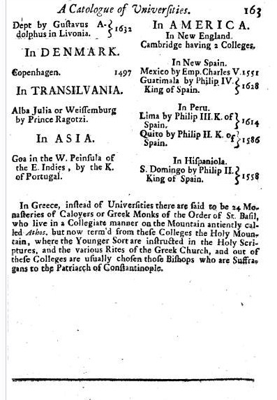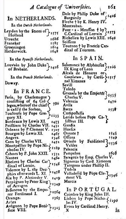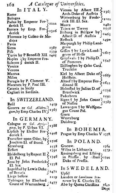 The following schools were operating at the time in this part of Europe (Wells, 1706, pp. 158-163).