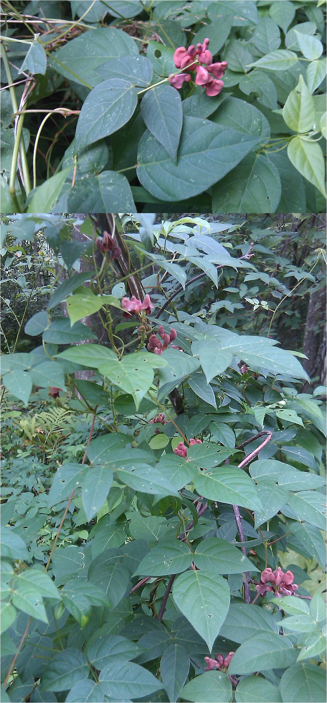 The Garden Society’s review of Jane Colden’s manuscript has this plant identified as “Glyeine” a misinterpretation of her rendering of the most common genus name for this plant–Glycine. The groundnut and hog-peanut are often treated as cousins or “similars” –plants which are related and which have similar ethnobotanical features. In this case, the two Glycines expected in the Coldenham area are Amphicarpus (Falcata) bractata and Apios tuberosa Moench. (originally Glycine apios L.) Jane’s manuscript reviews “Apios gronovius” (officially Apios gronovius Gronovius? before Linne’s name became the standard.). So, for the time being, the assumption here is that Apios is being described. According to Jane, the Apios gronovius species has its leaflets in 5’s. and bears dark red flowers. The following photos focus on Jane’s plant, with a picture of the “similar”, in some botanists’ eyes, added at the end.