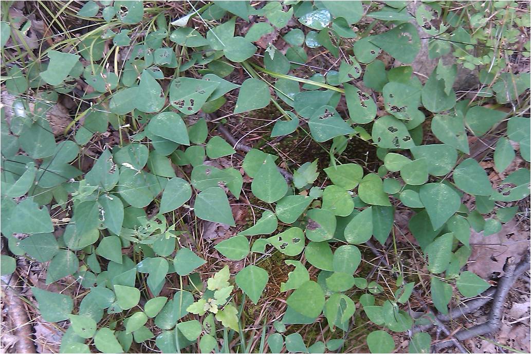 In much the same way as the American Ginseng market, there was a moderate amount of success trading this commodity with the Orient. But unlike the Ginseng market, this starch trade route couldn’t hold its own for very long. One of the major problems with Smilax is finding the rootstock. The vine itself is very thin and fragile, and one can rapidly lose track of just where the vine one is following towards to ground actually goes as its weaves through the various limbs and numerous other vines like wild grape and dodder. Secondly, once one reaches the ground and successfully discovers exactly where the vine has arisen from the soil, the problem becomes trailing the thin, fragile, extension of the vine, now a root, through the stone-ridden rock-hard soil. In fact, one of the best ways to find such a tuber, which can actually be pretty massive at times (up to 2′ long and 4-6″ around), one has to essentially dig up the entire area and pray for a discovery. This root could be just a few inches beneath the soil where the stem has arisen, or 15 feet away and 2 or more feet underground. If one were to chose this for their profession during Colonial times, making any sort of economic headway work- and time-wise would not be an easy task. Due to this, we never really hear much more about the early Colonial Smilax root industry following the initial attempts made to market this plant in Virginia and the Carolinas.