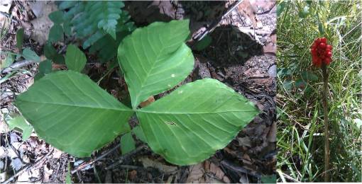 Again, noted the focus on three-leaf form for this plant. The Arum can be distinguished from Trillium by the vein formation with the leaves. Jane recognized this and made it an important point in her discussion of the leaf formation for this plant. Perhaps the most interesting part of her description of thois plant and its flower is her details on the pestills and chives in this plant–a very tough feature to describe for this type of flower (known by botanists as spathe and spadix).