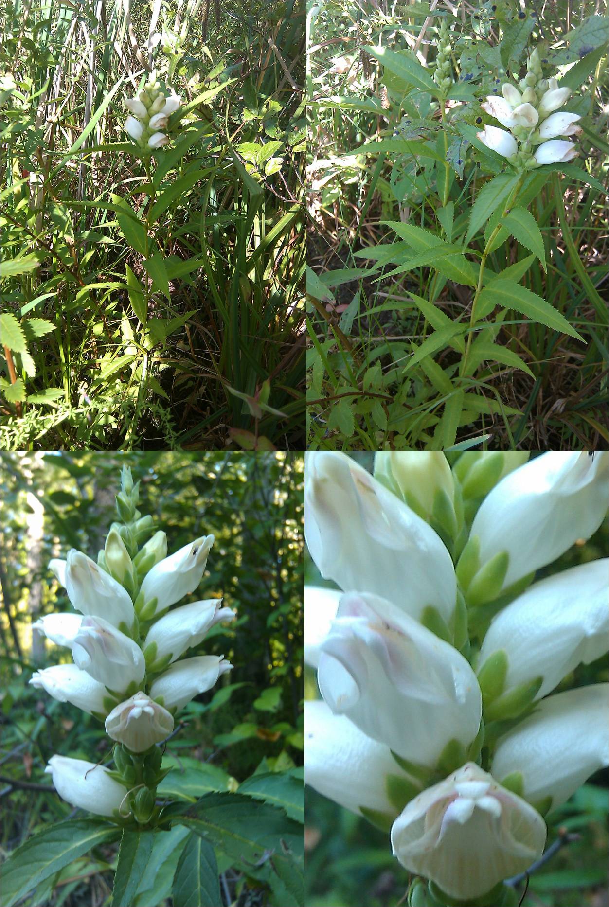Turtlehead, or “C’helone Pentstemon” as Jane called it, is a periaquatic (shoreline or waterside) plant that can be tough to find. I was fortunate enough to come upon two patches of these recently that were flowering–one on a lakeside next to a Broadway paralleling 25 near Shokan, and the other along the Hudson River a few miles south of Rhinecliff. A close inspection of the flower reveals how it got its common name. The Latin name Pentstemon refers to a fifth rudimentary stamen in the flower. On and off, this genus name has been more associated with several western species of closely related plants in the scrophularia family (“Pentastemon”). This plant family due to its definitive flower form is rich in herbs that are often considered to resemble some sort of snakehead, due to its unique flattened shape, stamens resembling a pair of fangs, the forked-tongue protruding from the tip of each flower, and the way in which the petals are merged thereby form a distinct head- and face-shape. In Asa Gray’s manual of the Botany of the Northern United States (1857), three species of Pentstemon (known as Beard-tongue) are identified, with one native to Connecticut-New York (P. pubescens Solander).