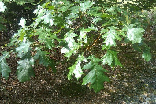 In the following two pictures, the major difference between “black” and white oaks in terms of leaf-form can be seen. The “black” oak leaf is pinnate and has extensions of the leaf veins protruding from sharp lobes or lobules. The white oak has rounded lobules, and lacks the sharp tips produced by extended veins.