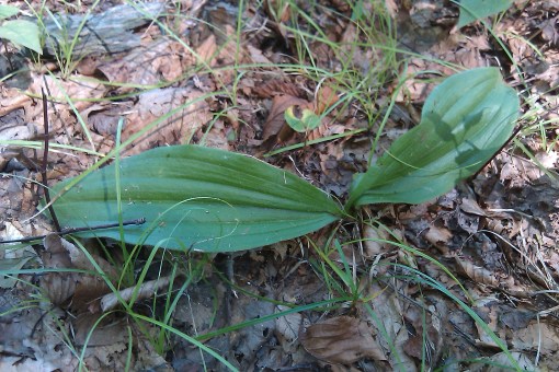Jane’s leaf drawing pretty much resembles the leaf picture below for a local orchid noted in passing. This is probably a large twayblade or Liparis liliifolia. (Jane reviewed 3 orchids, but neither of them seem to match this example in terms of woodlands location and appearance.)