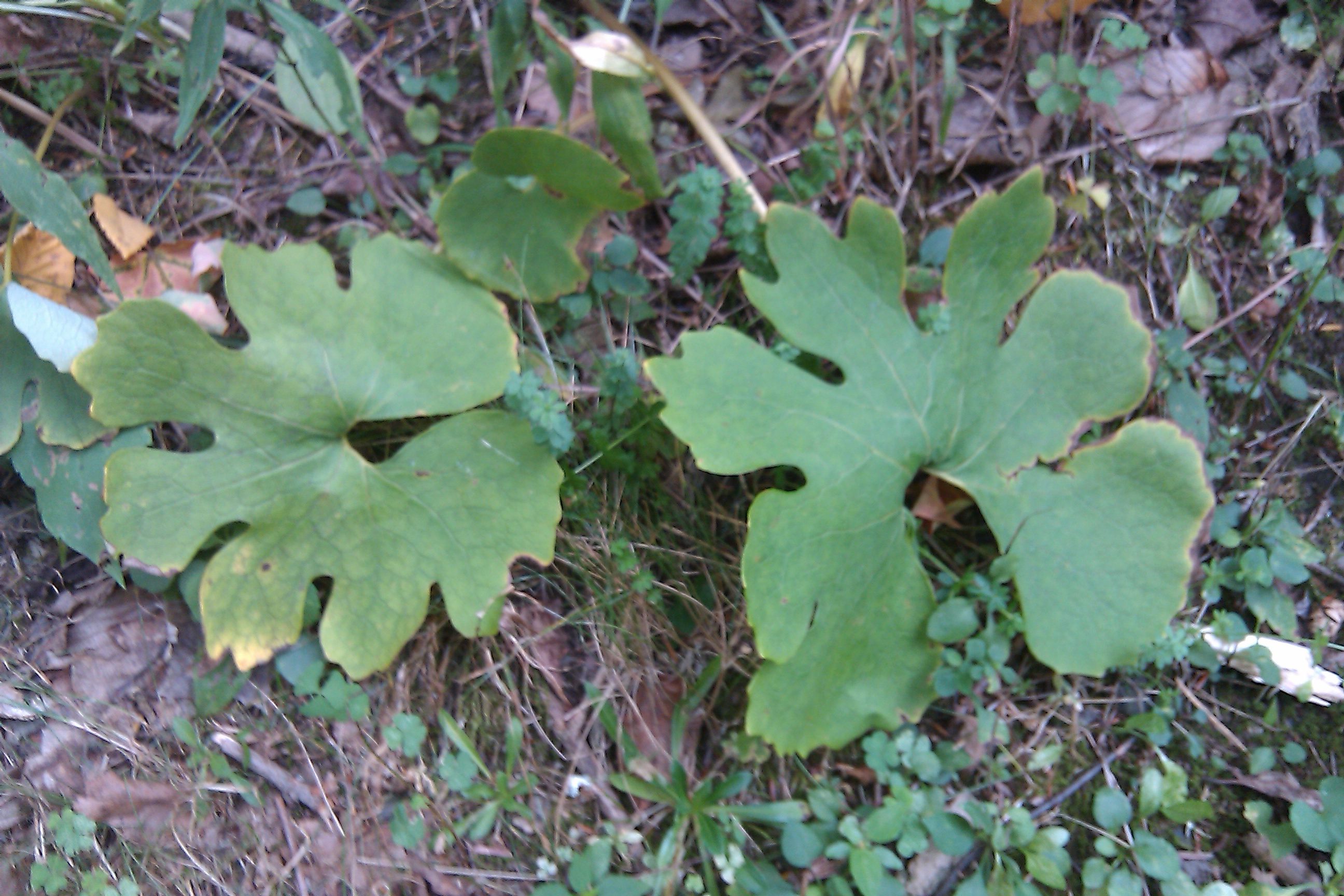 What this is all leading to is my point that there is a moderately complex “transformation of common belief” taking place here, a topic that I address several times elsewhere. It is common for people to make visual and psychological assocations between plants and their uses based on simple observations and changes that result in personal philosophy and psychology. The plant is then used as if it were traditionally applied in this fashion, even though it is not. During the periods in history when natural theologian/natural philosophy formed the crux of many arguments about plants and their uses (as “signs of Heaven” or clues produced by God), experience, observations and reasoning were not always the reasons these plants came to be the medicines that they are. Be it due to Jane or some other local family or herbalist familiar with the European Coltsfoot, this name “coltsfoot” interestingly did not stick around for the local Asarum plant. It had a European relative Asarum europium L. (asarabacca) which could also be a reason for this. That plant, appearing much like the local Asarum (except taller and more erect, and with leaves twice the size, darker and more “hairy”) was also not named coltsfoot apparently. So the use of coltsfoot as a local name for this herb stands out as possibly being local folklore and culturally based.