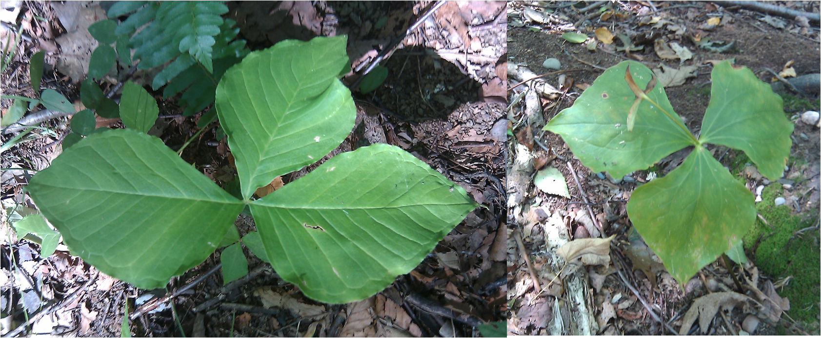 The three main trilliums of the Hudson Valley region are Trillium cernuum, Trillium erectum and Trillium grandiflorum. Trillium erectum has the purple flower Jane talks about, Trillium erectum the smaller white flower shoe noted for the second trillium. The third species, Trillium grandiflorum she never described in her manuscript. To Cadwallader and Jane, the Trillium was simply a local example of the Herb Paris of Europe, a plant with much the same appearance, with the exception of its additional leaf or leaflet in the cluster at the top of its main stem. The NewYork Trilliums were ultimately new species for Linnaeus. The diverse stories about their local Native use would not be put into writing until the turn of the next century, around 1800 approximately.