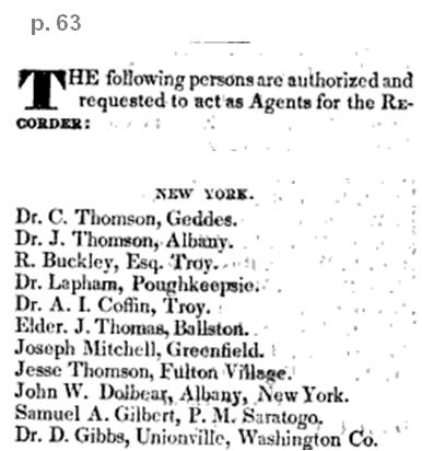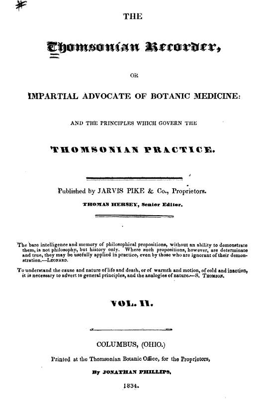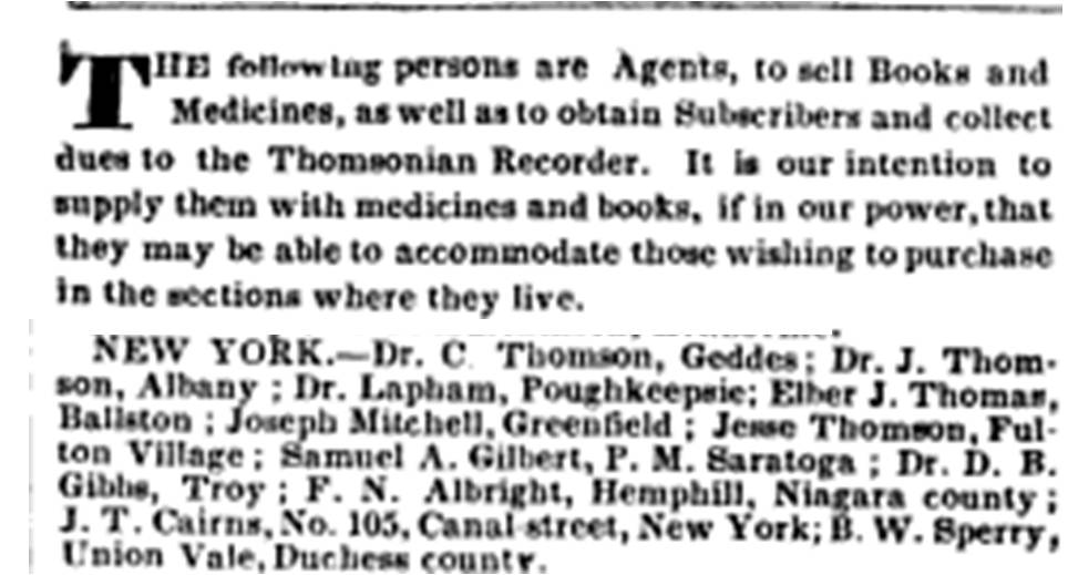 The following two lists are found in the 1834 publication of Thomsonian Recorder, this version published in Ohio (Poughkeepsie had its own version):