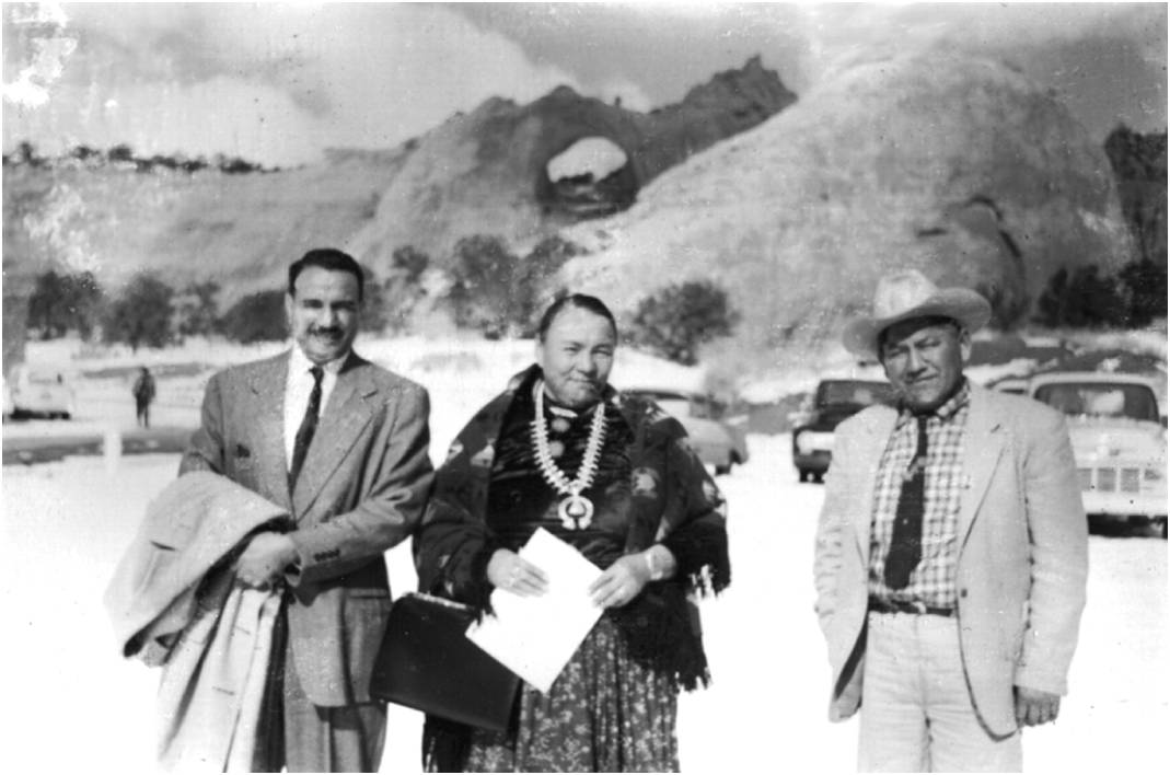 Original photograph is in the Archives & Special Collections, Augustus C. Long Health Sciences Library, Columbia University Medical Center, New York, New York. The archival caption for this photo reads: “At Window Rock, the headquarters of the Navaho Reservation with Mrs Annie Waunika, the Chairman of Health Committee of the Tribal Council and Mr. Selth Bejay, the late delegate to the Tribal Council for the Many Farms area.” Source: Abdel R. Omran, “Use of the “Epidemiological Approach” in Evaluation of Tuberculosis Case-Finding by Tuberculin Testing of Young Children in an Area with Underdeveloped Resources.” Doctor of Public Health thesis, Columbia University, 1959. From the article by GEORGE WEISZ AND JESSE OLSZYNKO-GRYN , entitled “The Theory of Epidemiologic Transition: the Origins of a Citation Classic”, JOURNAL OF THE HISTORY OF MEDICINE AND ALLIED SCIENCES, Volume 65, Number 3 , p. 287-326, accessed on March 24, 2012 at http://www.mcgill.ca/files/ssom/OmranFiinal.pdf.