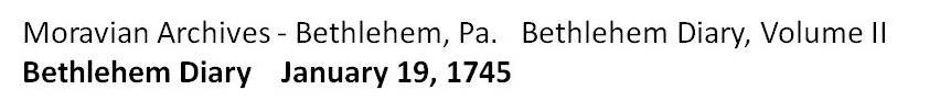 Bryzelius conducted the Bible study. Döling preached in Maguntshe. At four o’clock in the morning, Br. Huber rode on horseback to Nazareth to report to the congregation about the accident at that place. Br. Pyrlaeus preached about the lowliness of the noble boy, Jesus. There were quite a number of strangers present. Br. Nitschmann returned from his visit to the country. Here and there, especially in the Oley mountains and at Heidelberg, he had met many souls who had had no knowledge of us and who had listened eagerly to his testimony about Jesus. He considered it most essential for the Wheel to search out these souls everywhere and to bring them peace. He also had had many requests for schoolmasters. Speaking was held for the brethren and sisters in preparation for Communion. Pyrlaeus conducted it for the Indian brethren who arrived today from Shecomeko. Gideon, Lucas, Josua, Mary, and our Thomas ate and drank the body and precious blood of Jesus with us. Andreas and Benjamin, who had not partaken of it as yet, witnessed it with glowing hearts. At five o’clock the lovefeast began, which consisted of bread and water. The congregation remembered our dear Br. Ludwig’s departure [from Bethlehem], which had taken place just a year ago, and what a small number we then were as we went to the Meal of the Lamb. Now, however, we are more than 160, even though the Savior has been very severe, and has not permitted some twenty or more to participate. We rejoiced at the growing number of believers and wished they would increase so much that our folds and stalls would be too small. In contrast to its joy, the congregation was sorrowful because of Br. Georg Kremser’s departure in such a way and the home-going of Sr. Bruker in Saint Thomas, when there is so great a shortage of female Workers there. Soon after the Footwashing and the Laying on of Hands, which took place with indescribable emotion on the part of the congregation, the Meal of Jesus’ Warriors was held in memory of His death and for new strength in spirit, soul, and body. Pyrlaeus served those who were sick. Eight on this side of the river and six on the other could not join us because they were not feeling well. Following the tender Kiss of Love, due to the lack of room we knelt in worship of the Lamb, and the Te Christum laudamus was sung, the Choirs taking successive parts. The address prior to Communion was exceptional; it was on the watchword for today regarding the Savior’s presence in His congregation and our abiding near His wounds and among His people. Br. Ludw. Hübner and Sr. Christina Krafft partook of Communion with the congregation for the first time to the abiding blessing of their hearts. We dispersed after one o’clock at night, and we all commended ourselves to the shrine of the wound hole.