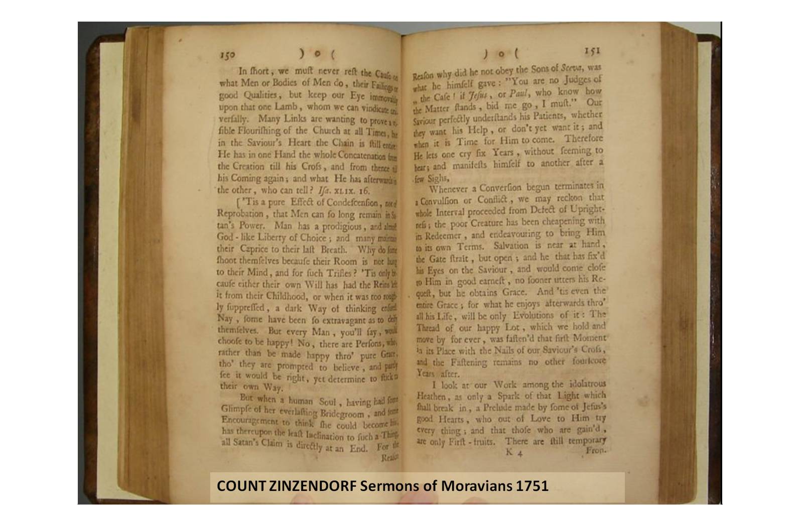 Months later, having heard about the successful encounters missionaries had with the Mahicans, the Count of the Moravians, Count Zinzendorf, decided it was time to visit these converts. After staying with the Shekomeko Indians for several days, during which he performed several baptisms, he prepared to take leave on September the 4th back for Bethlehem. But before taking his affectionate leave of these “worthy people”, he was surrounded by a large number of them, and ultimately watched as they sung him a hymn of thanksgiving to him in the Dutch language. He and his company then set out for Bethlehem, accompanied by some unbaptized Indians as guides. Along the way, two of them, having answered several questions he put to them in presence of the whole congregation in Bethlehem, the crowd’s cheerfulness and emotion led the Count to subsequently baptize them as well, whom he called David and Joshua. The Count had just made an important point with the leaders of this church of Moravian missions. This was the first baptism of Indians that took place in Bethlehem, preceded by more of the same within the unmodified wilderness setting of Shekomeko. The conversion process for ultimately the entire group of Mahicans was now underway.