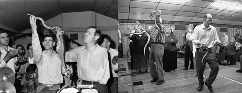 The image of Mary looking down into a glass receptacle filled with snakes symbolizes the purported power good has over evil, or in the case of medicine, the natural healthy body over a body suffering from some diseased state. In the case of the religion with snake handlers, religion provides us with the baseline needed to initiate the snake handlers faith. With the snake or serpent representing Satan, we go from Old Testament to New Testament in one single application of Adam and Even’s conquest to the fights with the devil of those healed by Jesus had to contend with. One could argue that without the snake, there is no reason for this kind of thinking to exist. The same is true for snake handler religions. In the purest sense, snake handlers have a skill that is symbolized by good and evil. these worshipping scenarios, the miracle here is handling the snake and not being bitten by the snake, or if you are bitten, not suffering much pain or even death due to the snake bite. One could argue there was no direct intervention taking place here by any sort of Great Spirit modality. This event is due to certain influences brought about through natural events related to the snake, the snake holder’s mood and affect, and perhaps even something as simple as the general temperature and climate for the time.