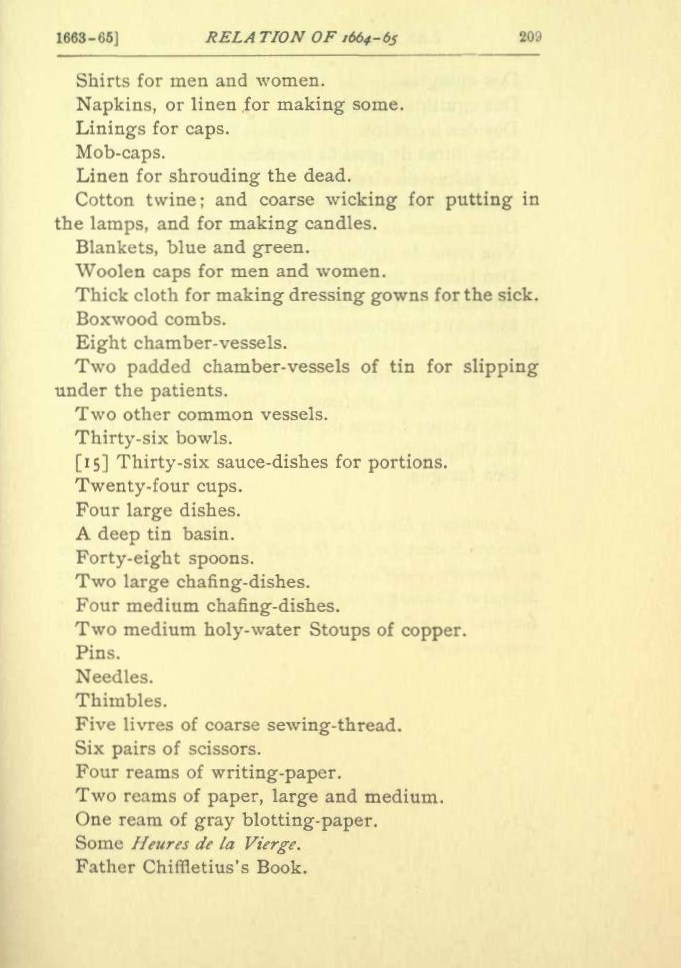 Secondly, the use of cinchona to treat fevers was a common method of dealing with fever during this period in medical history. It is possible that the cinchona was just not plentiful enough to go around to all physicians and practitioners. Yet, the nuns do not request this medicine, suggesting their philosophy allows them to perform other methods of similar sanative value, such as bathing the body to induce a sweat, or making use of black pepper (Piper nigrum, “six livres of pepper”) to heat the body further, thereby sanatively spurring on this much needed change in the body’s physical state.