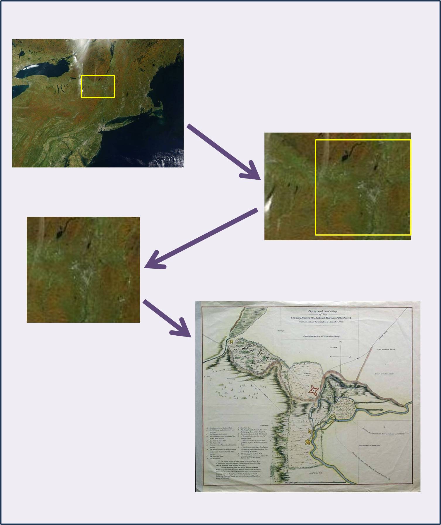 Generally speaking, if a particular feature is visible from above, it most likely played a role in the local land claims process. Examples of these topographic delineators include: the Hudson River, the Adirondacks, the Catskills, the Shawwangunks, Green Mountains, the Great Lakes, the Saint Lawrence Seaway, the Finger Lakes, Lake Champlain, the Connecticut River, parts of the Susquehanna and Alleghany Rivers, Long Island, etc.