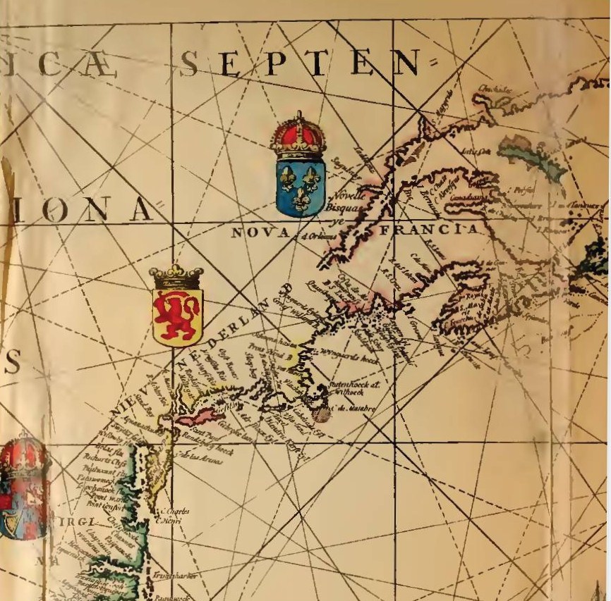 Another important feature to note is the sharing of colors for Nantucket Island and Long Island (both are darker green). Martha’s Vineyard seems to lack any claims based on its assigned color. Similar color patterns have also been assigned to New England, New Jersey and the large area of Virginia, suggesting knowledge about British domain in these regions. The boundary between Pennsylvania and New Netherlands lacks a detailed dividing line, more than likely due to the fairly scarce information available about this region.
