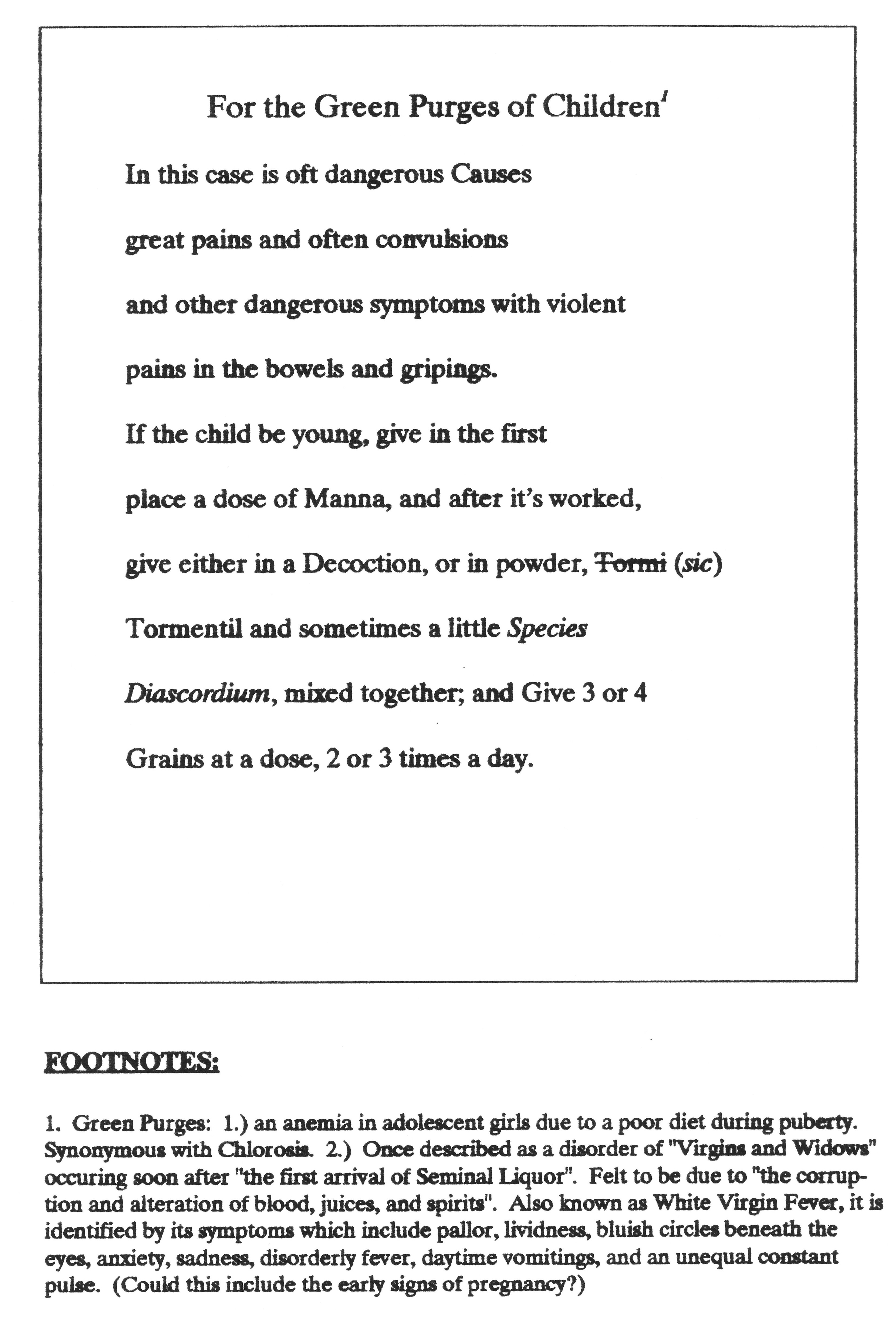 Osborn warns us that prolonged cases can cause great pains and convulsions. This suggests he may have experienced cases in which hookworm causing extreme blood loss through the stools resulted in ionic (Na+, K+, Ca++, Mg++) imbalances in the blood causing muscle cramping and convulsions to ensue. Some types of metal consumption can also cause this condition, especially lead, a possible occupation disease hazard for the Hudson Valley during the Colonial and War years.