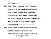 So far Dr. Osborn has treated the passions or melancholy, delved into the alchemy of this problem, paid heed to its historical astrological makings (the Iron of Mars versus the Ens of Venus, which is a copper planet), paid heed to electra via its static electricity, reminded us of one of Shaekspear’s favorite herbs, Lavendar, now all he has to to do is ground all of this into something a little more earthy in nature. Thus his eight remedy—an herbal concoction consisting of Spirit Salarmo or Spirit of sal ammoniac, ammonia at its best, wite hemp (not cannabis), stink cedar growing by the river side, and sow’s thistle—except for the sal ammoniac once again, this is something very much akin to a local midwife’s folk medicine formula. Next he offers her a stinking pill—pill fett or pilule foetidus, something only an apothecary like him could make and know about—this we assume outshines or out-performs the smells of the weaker stink cedar recipe.