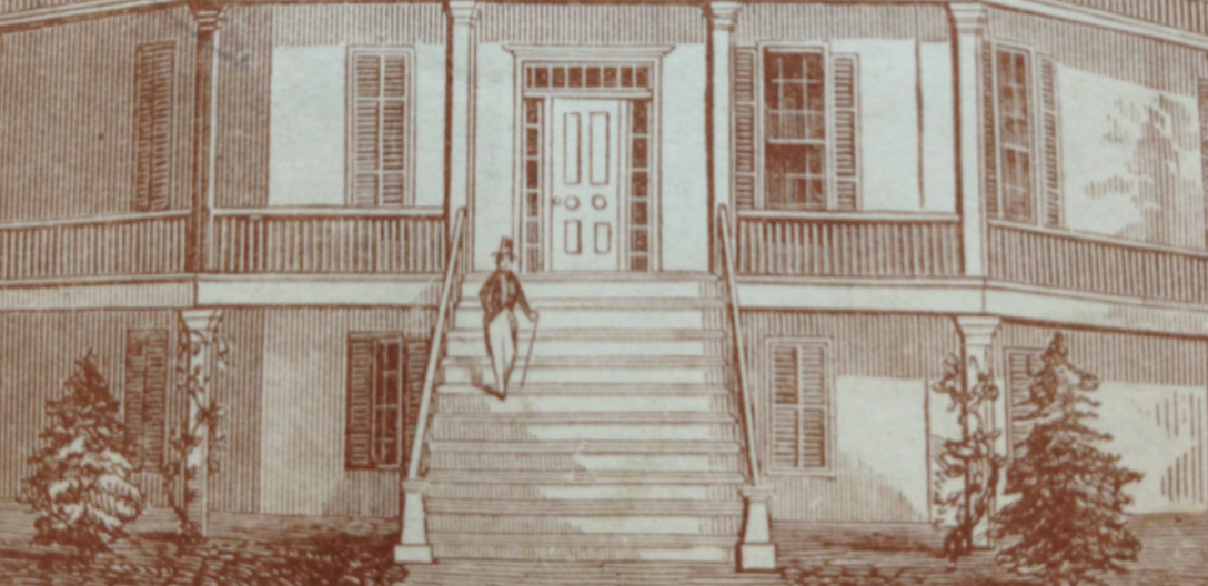In his book, the frontispiece provides us with insights that only the locals for the time probably recognized. In his illustration stands a man dressed in a suit and tall hat, looking towards us and probably towards the street. The first thing that comes to mind when you see it is ‘wow, that house is hug!’ Which is exactly what I thought, But knowing the property and every square foot of its size and complexity, I couldn’t imagine the house to be that big. ‘There’s something wrong here’ I kept saying to myself. Then it came to me (and believe it nor not, not due to any seancing or such).