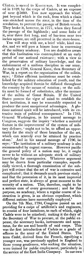 - 1794, May 7 — Congress passes an act on Military, includes 10 cadets.