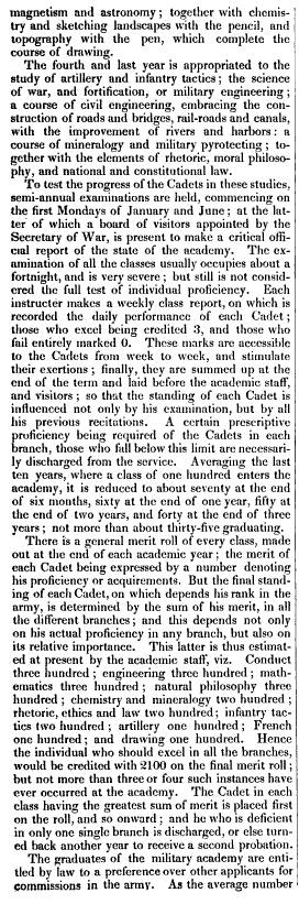 The military topics of study other than medicine were interesting, to say the least, during these first two decades of United States history. It was typical at this time for those interested in Natural Philosophy to become intersted in medicine, and any cadets who wanted to become surgeons were probably inspired by this topic and its teacher(s). Natural philosophy was not the first topic to be officially taught at West Point however. The first official classes with teachers were in the Arts and in French, not at all topics we expect to see promoted at such a school during its first official combined classroom and tutoring years. We can only assume that the students at this institution spent most of their time training in military skills, a topic for which official classes had not been developed, just the most widely accepted forms of military exercises, some produced and taught by followers of the Fishkill Site educators in military practices who came here from France and Germany.