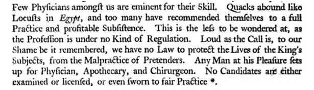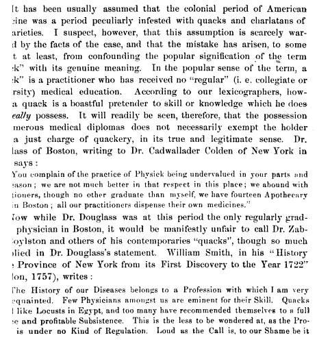 One of the more common quotes we tend to see in medical history is the following by historians William Smith and John Van Ness Yates in History of New-York: from the first discovery to the year M.DCC.XXXII . . . (London, 1757, page 212):