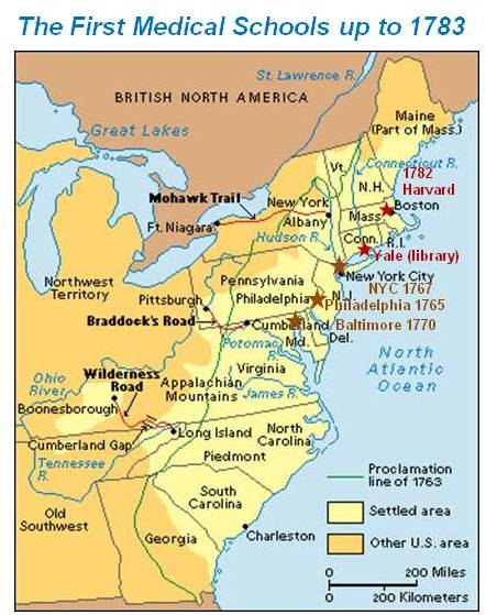 - 1770. MD. A school may have been started in Baltimore, Md. Noted by at lest one 19th C medical historian evidence for official organization appears in directories.
